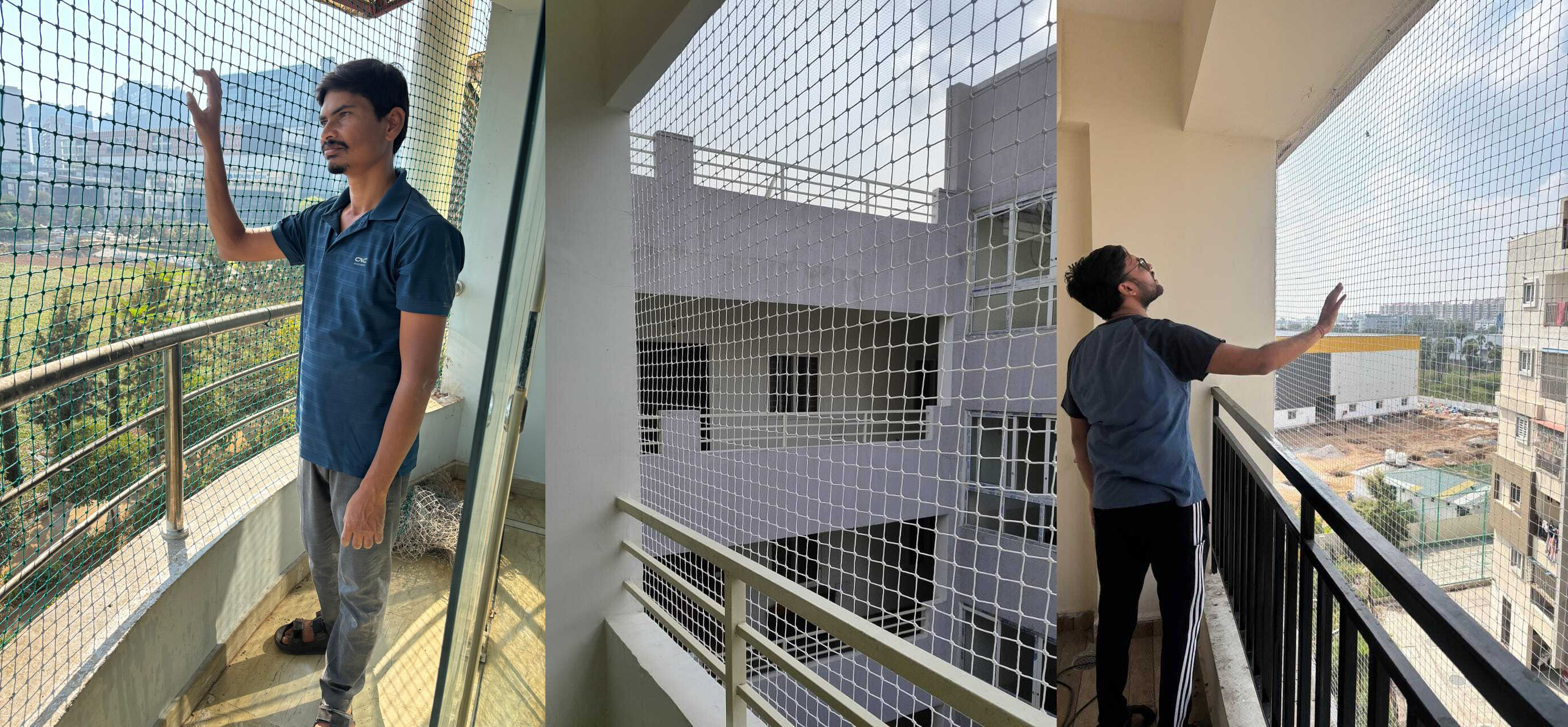 At Gnr Safety Nets, we focus on customized installations that perfectly match the dimensions and structure of your space. Our skilled technicians take precise measurements, ensure strong knotting, and use secure fixtures for a flawless setup. We prioritize safety, professionalism, and workmanship in every project—big or small. Our installations blend naturally with modern architecture, making them suitable for apartments, villas, offices, schools, industries, and high-rise buildings.